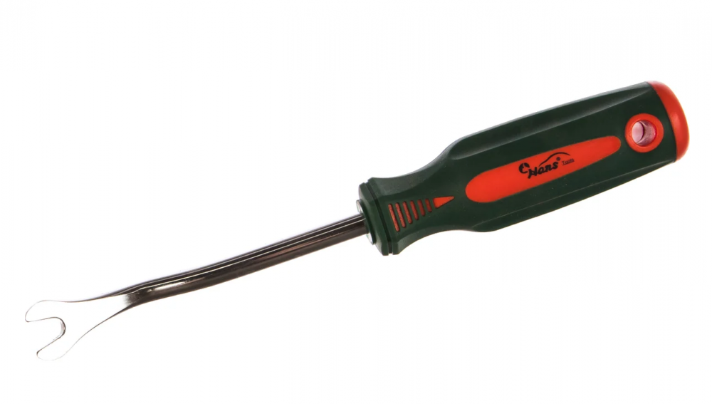 Съемник пистонов обшивки дверей Hans BT-2B - простое и удобное в работе ручное приспособление для демонтажа элементов крепления салонной обшивки автомобиля. Размер: 0.8х90 мм.